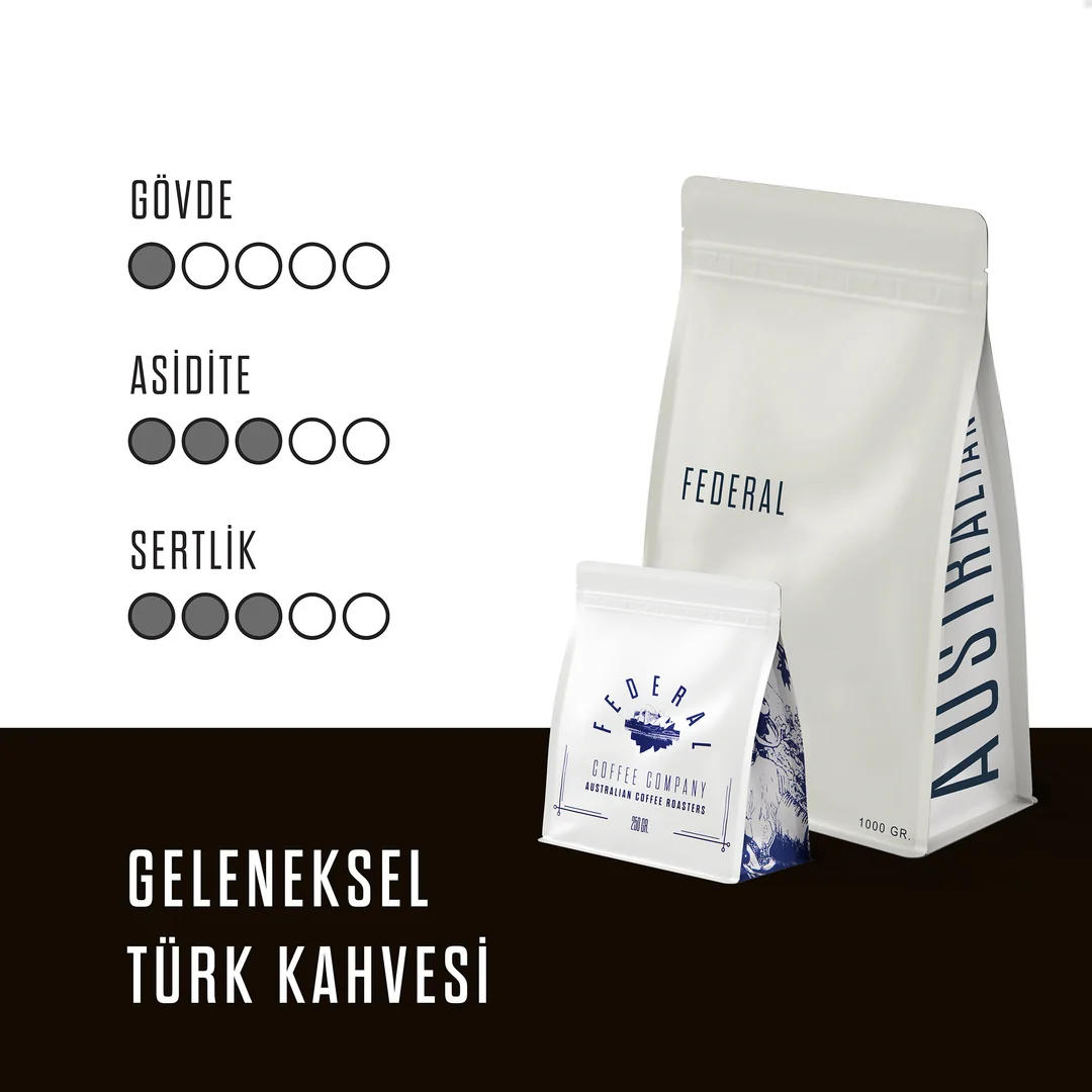 Geleneksel Türk Kahvesi, Federal Coffee Co. tarafından sunulan, zengin çikolata ve fındık aromalarıyla bezenmiş bir kahve deneyimidir. Bu kahve, damak tadınıza hitap eden yoğun bir lezzet profili sunar.